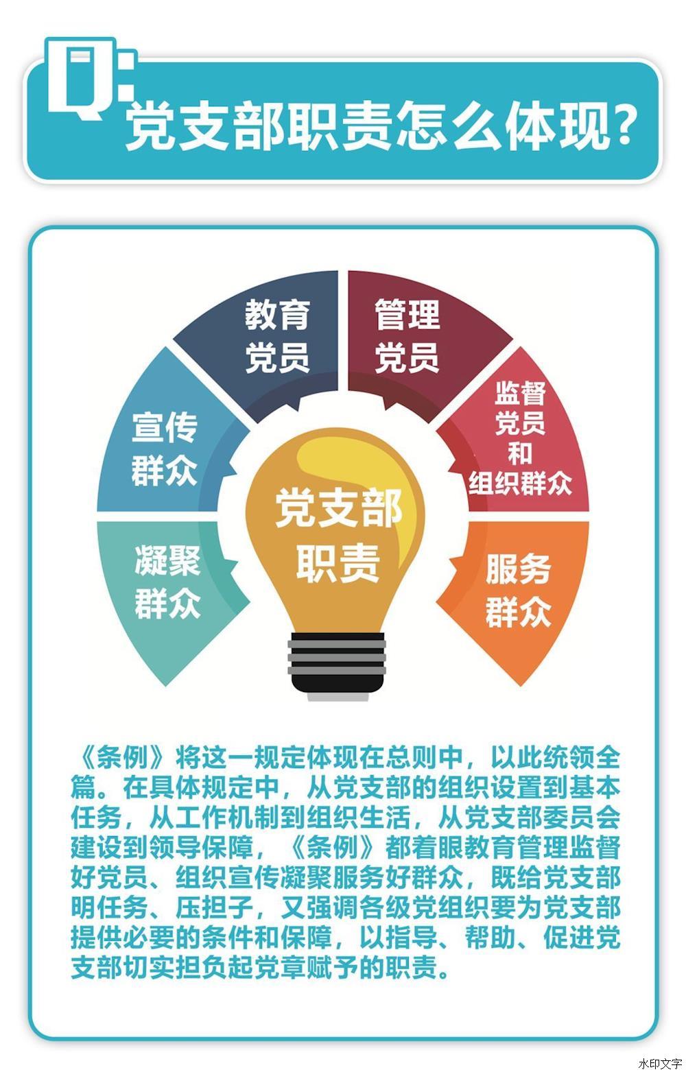 第二條 黨支部是黨的基礎(chǔ)組織,是黨組織開展工作的基本單元,是黨在社會(huì)基層組織中的戰(zhàn)斗堡壘,是黨的全部工作和戰(zhàn)斗力的基礎(chǔ),擔(dān)負(fù)直接教育黨員、管理黨員、監(jiān)督黨員和組織群眾、宣傳群眾、凝聚群眾、服務(wù)群眾的職責(zé)。