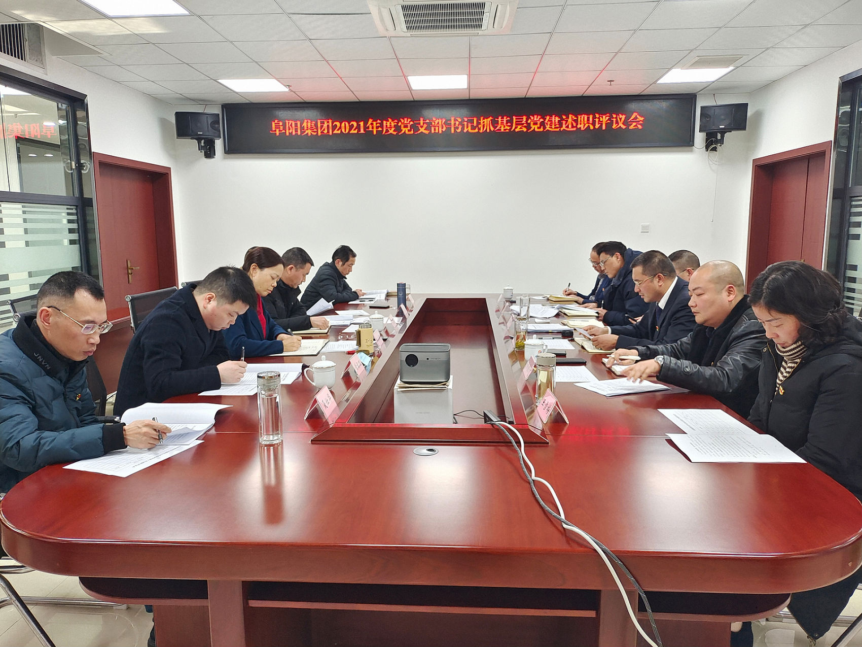 1月18日下午,黨委書記游啟君主持召開了阜陽集團2021年度黨支部書記抓基層黨建述職評議會。集團公司黨委班子成員、各黨支部書記參加會議,縣財政局國資股湯連宏、黃福理同志蒞臨指導(dǎo)。