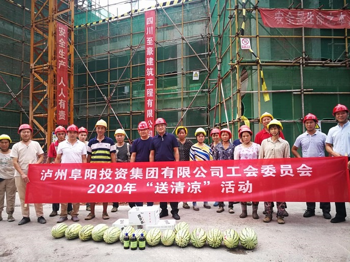 近日,合江持續(xù)高溫,為保障一線人員的身體健康,確保各項生產工作安全有序開展,8月11日,集團公司黨委委員、工會主席袁健,帶領集團黨群紀檢工作部、綜合部先后深入鑫晟學府、殯儀中心、龍掛山景區(qū)等十多個項目建設現場,看望慰問奮戰(zhàn)在一線的工作者,為他們送去清涼物資和關心關愛。