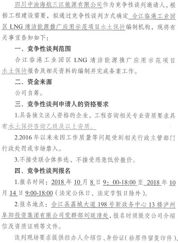合江臨港工業(yè)園區(qū)LNG清潔能源推廣應(yīng)用示范項目水土保持報告單位競爭性談判公告.docx