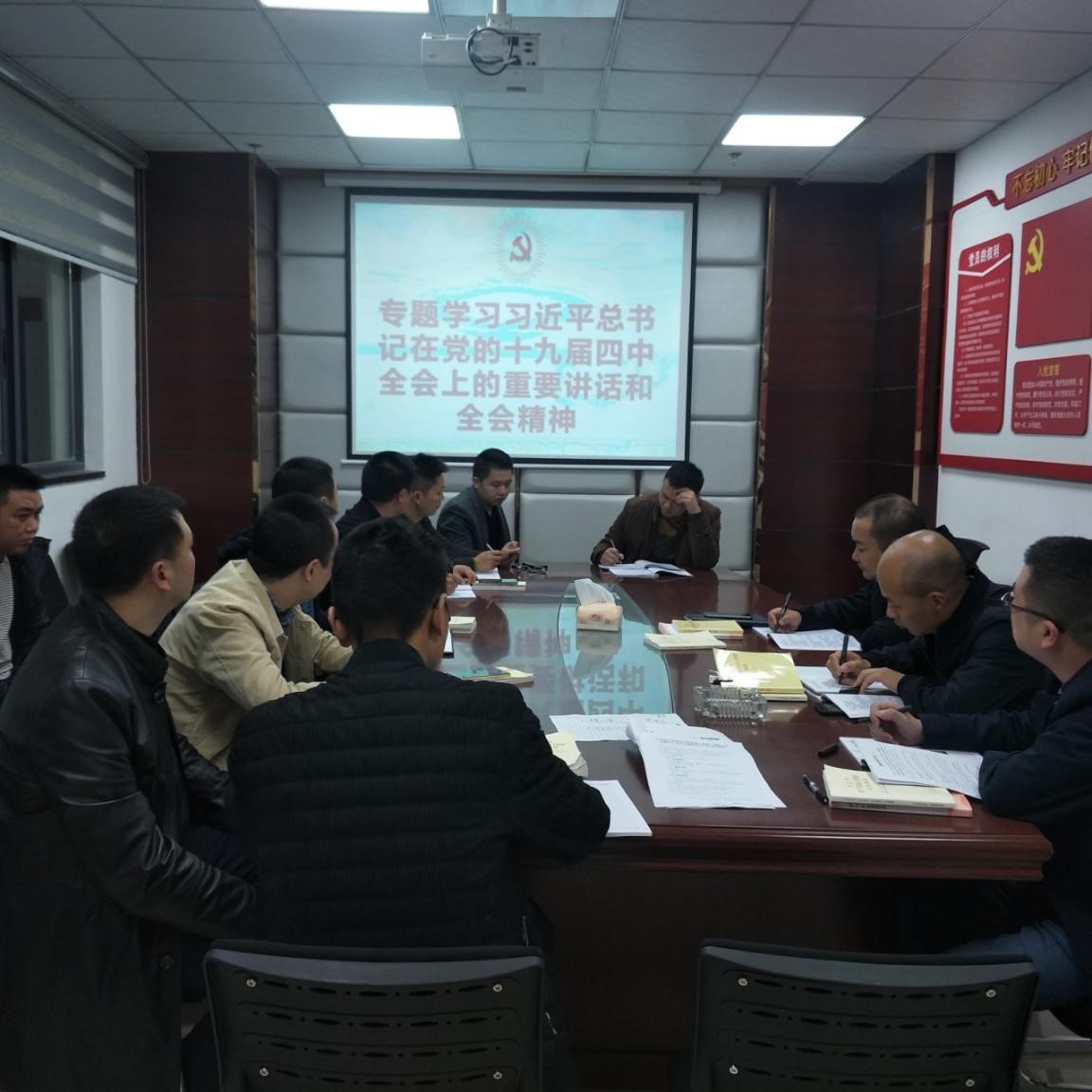 2019年11月8日,中共合江縣城市開發(fā)投資(集團)有限公司支部組織黨員、入黨積極分子持續(xù)開展主題教育學(xué)習(xí),專題學(xué)習(xí)了習(xí)近平總書記在黨的十九屆四中全會上的重要講話和全會精神。