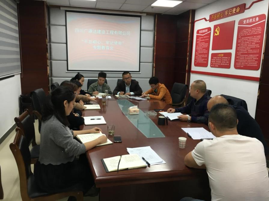 2019年10月15日下午,公司董事長譙棣升組織廣源達公司全體員工召開了“不忘初心,牢記使命”專題教育會。