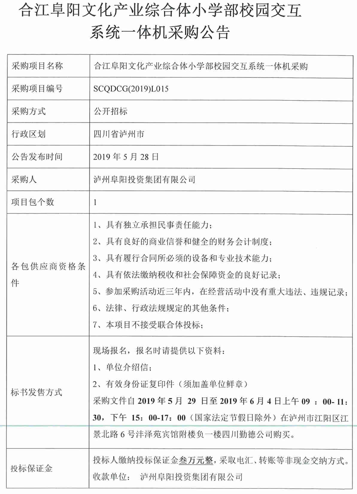 合江阜陽文化產(chǎn)業(yè)綜合體小學(xué)部校園交互系統(tǒng)一體機(jī)采購公告