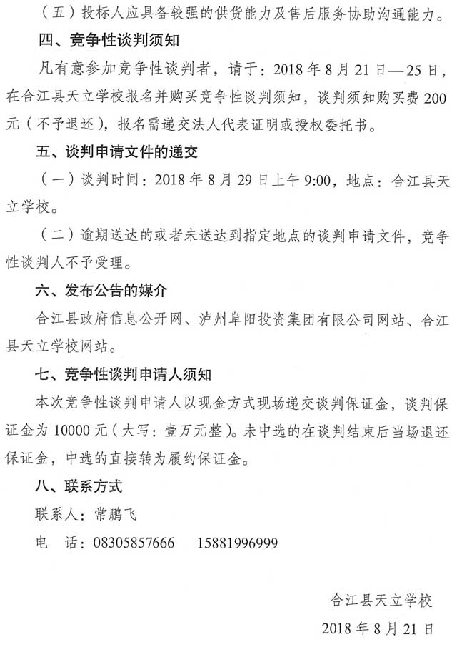 競爭性談判公告:合江縣天立學(xué)校食堂大宗食品定點(diǎn)采購項目競爭性談判公告