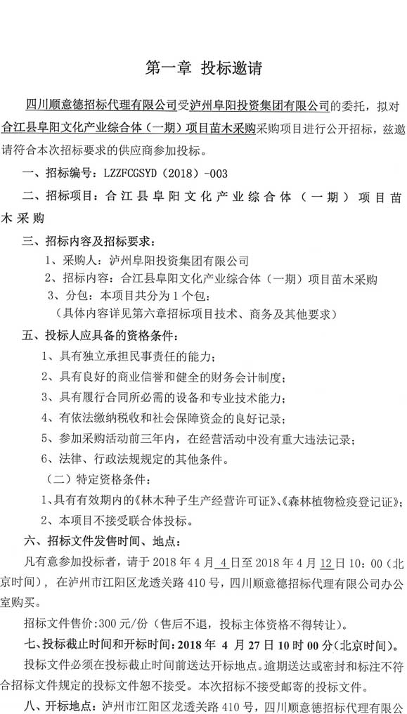 投標邀請:合江縣阜陽文化產(chǎn)業(yè)綜合體(一期)項目苗木采購