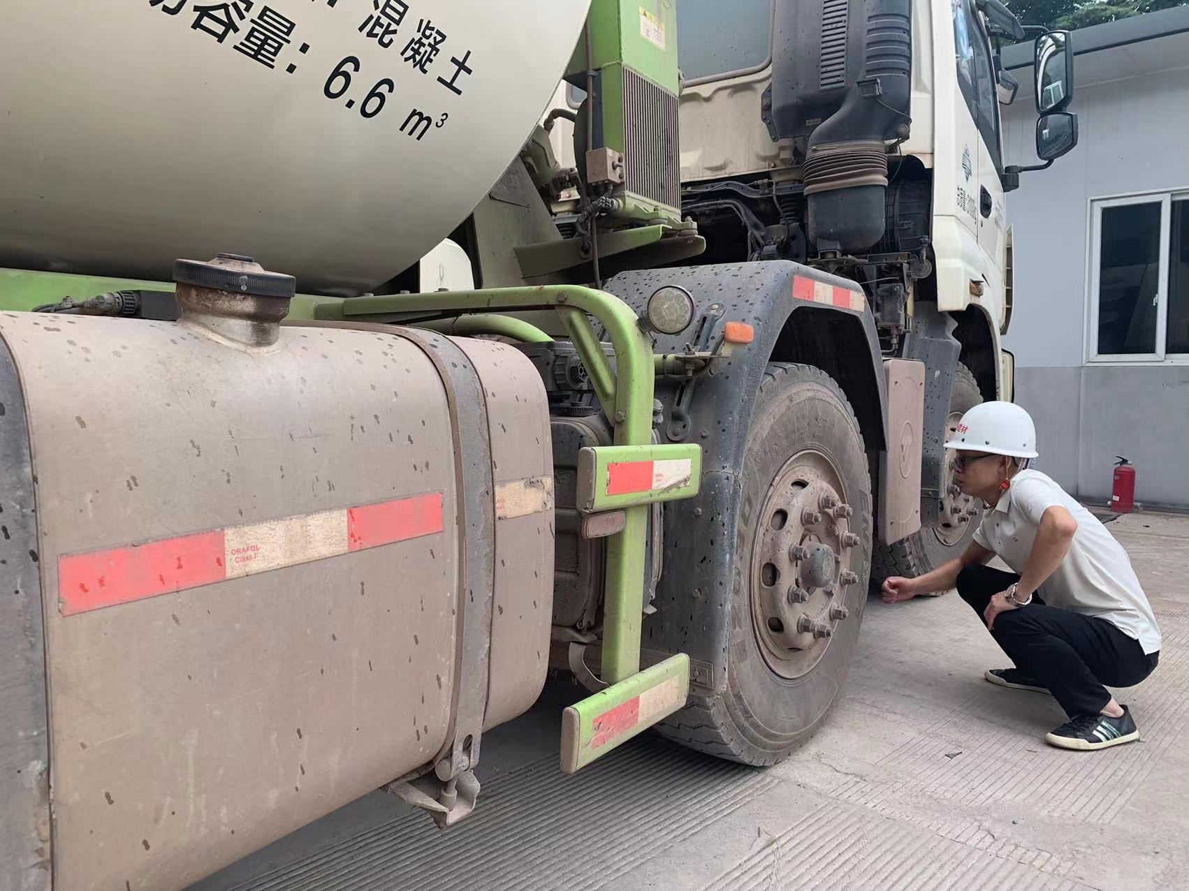 在國瑞商貿(mào)公司商砼站的停車場內(nèi), 總有一個(gè)身材清瘦、 架著一副眼鏡的人對即將開展運(yùn)輸任務(wù)的罐車進(jìn)行安全檢查, 并對司機(jī)開展駕駛前的安全教育, 他從擔(dān)任公司車隊(duì)長兼生產(chǎn)調(diào)度以來, 始終堅(jiān)守著車輛出發(fā)前的檢查工作, 他就是國瑞黨支部委員王平。