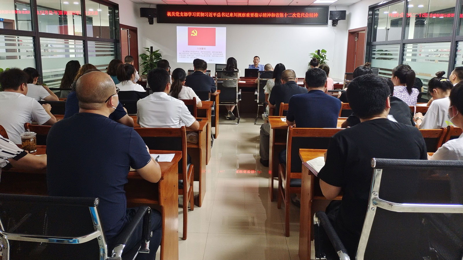 6 月 30 日下午, 機關黨支部組織本部黨員和員工群眾開展慶祝中 國共產黨成立 101 周年主題黨日活動, 活動由黨支部書記聶仕華主持。