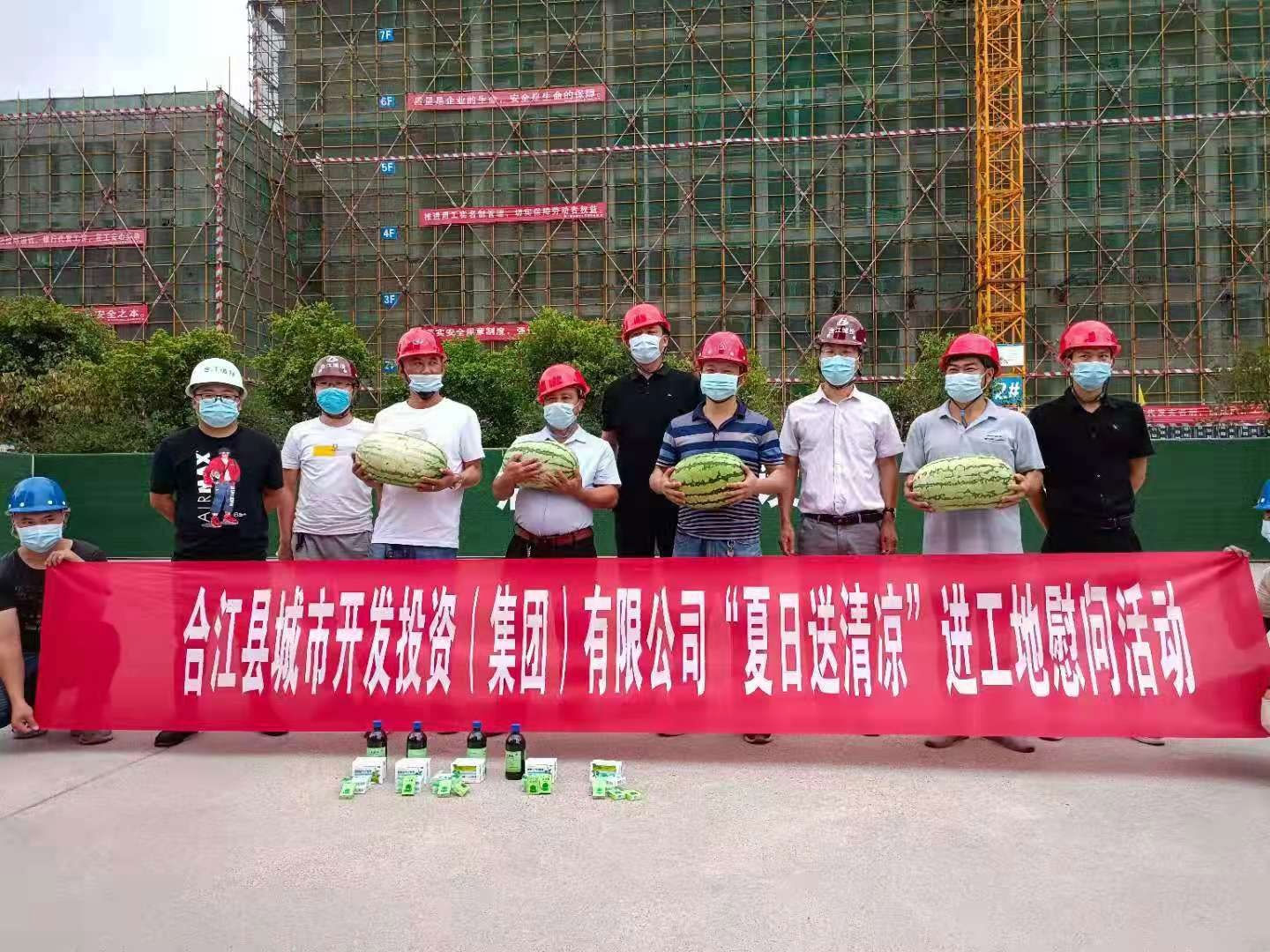 近日,為切實做好防暑降溫工作,慰問在一線奮戰(zhàn)的建設(shè)者們,合江縣城市開發(fā)投資(集團)有限公司組織開展了“夏日送清涼”進工地慰問活動。公司董事長兼總經(jīng)理鞠志良同志、副總經(jīng)理陳磊同志等分別帶隊前往合江縣城區(qū)及各鄉(xiāng)鎮(zhèn)建設(shè)項目工地現(xiàn)場,為奮戰(zhàn)在一線的工作人員送上了西瓜、藿香正氣口服液等防暑物品、藥品,同時,也進一步加強防疫知識宣傳,讓他們在盛夏的酷暑中感受到一份清涼與關(guān)懷!