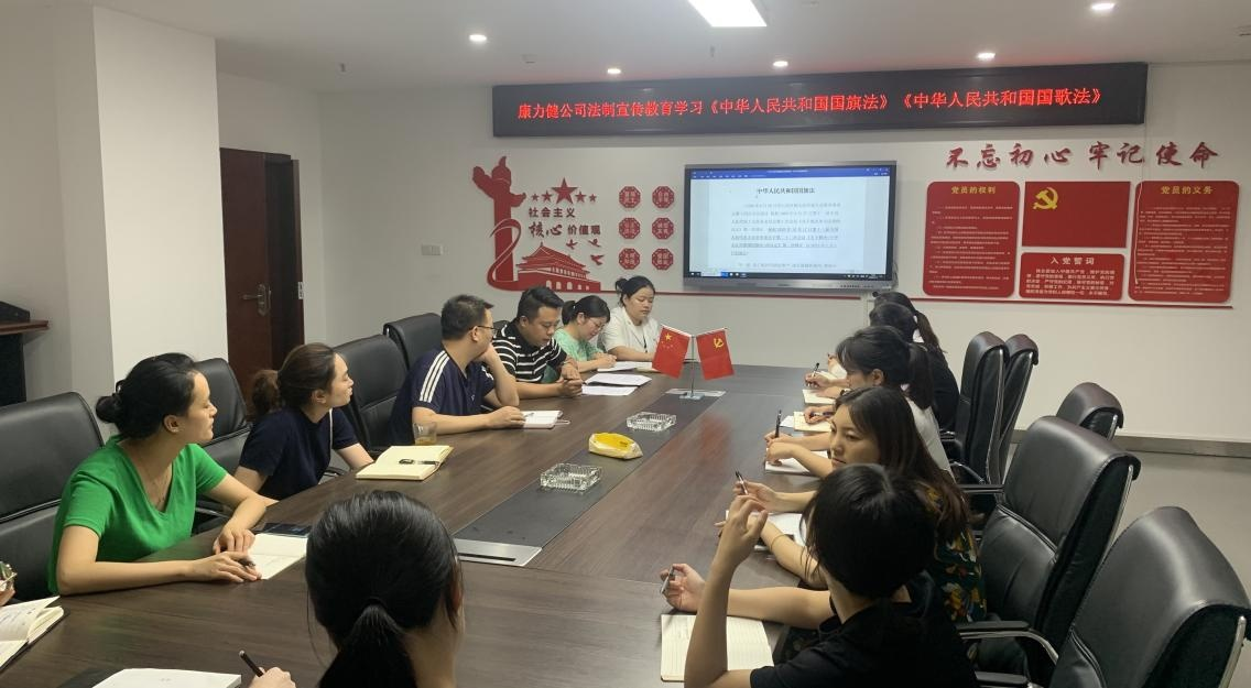 7 月 13 日 下 午 , 康 力 健 公 司 組 織 開 展 《 國 旗 法 》 《 國 歌 法 》 的宣傳教育和知識普及活動,由綜合部部長賀佳組織召開。